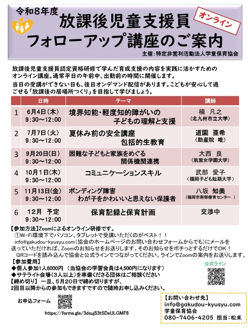 令和7年度福岡県放課後児童支援員認定資格研修 北九州第1クール